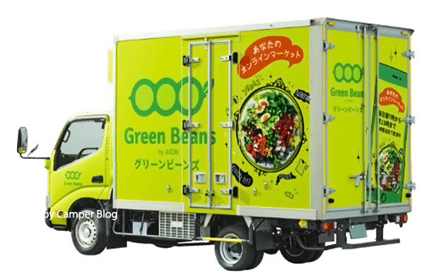 最近、街でよく見かけるようになったグリーン色のトラックは、イオンのネットスーパー「グリーンビーンズ」の配送車です。