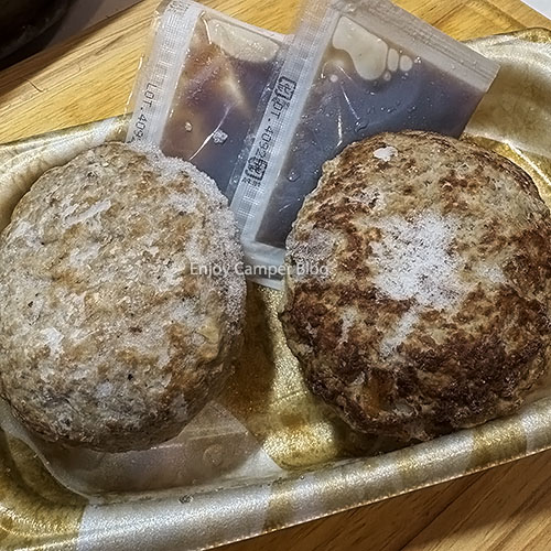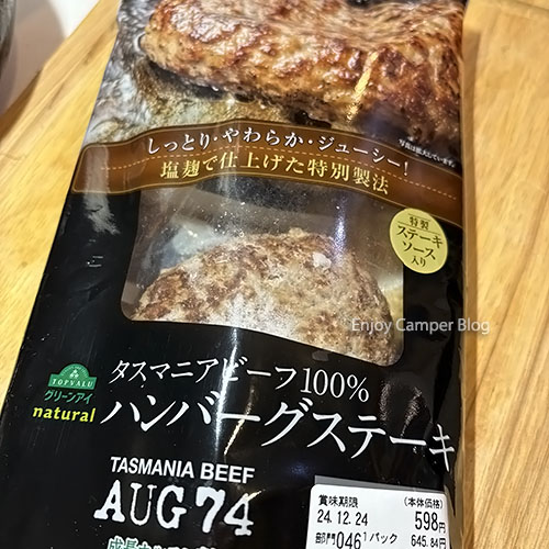2個入り598円(8%税込645円)で購入できます。これだけの100%ビーフハンバーグが1個当たり約322円(税込)で口にできるのはお買い得以外のなにものでもありません(注:個人的見解)。
