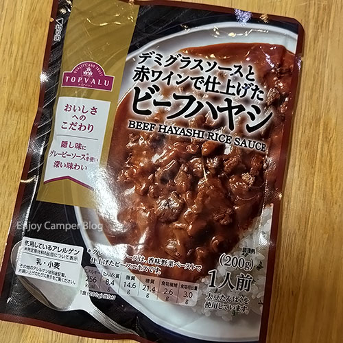 ソースも付属しているのでかけるだけでOKですが、少し凝るなら同じトップバリュのレトルト「ビーフハヤシ」がリーズナブルで美味しいのでおすすめです。少しケチャップで酸味を加えてみてもおいしいですよ。