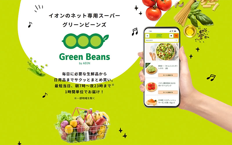 最近、街でよく見かけるようになったグリーン色のトラックは、イオンのネットスーパー「グリーンビーンズ」の配送車です。