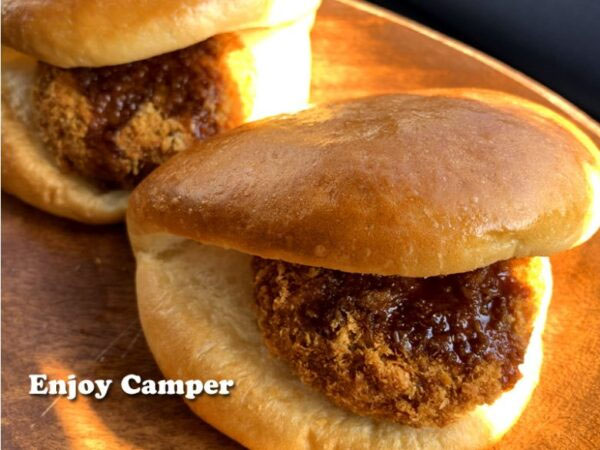 葉山牛コロッケやメンチを挟んだパンはお店で売っている「皮パン」という、お店で買ったコロッケやメンチをその場で食べたい人向けに用意してくれているパンで、ソースも自由にかけられるように用意してあります。
