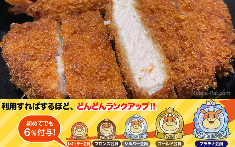 最高位のプラチナ会員(月間利用額5000円以上)になると、松弁ネットで利用額の12%、モバイルオーダーでも5%のポイントが還元されます。松屋ポイントで還元され、1P=1円で松屋グループで支払い充当可能です。