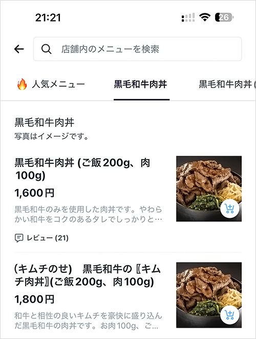 実際に注文してみた① 厳選黒毛和牛の肉丼