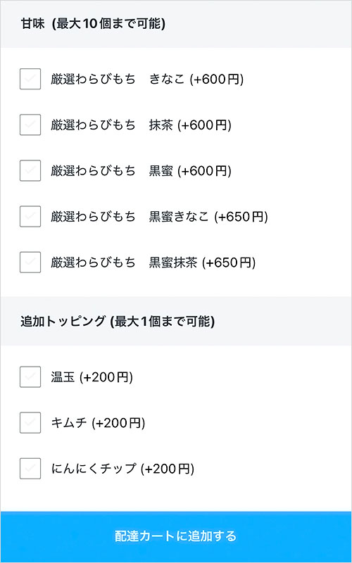 注文品を『配達化カートに追加する』をタップして注文を行います。