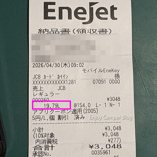 ここからは2026年4月の帰省時の燃費計測で、奈良~川崎自宅の約470kmでの検証です。