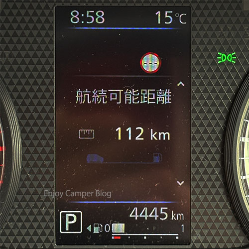 燃費計の画像でも分かるように、燃料の残量はまだかなり余裕があり、当然「赤ランプ」(給油警告灯)も点灯していません。