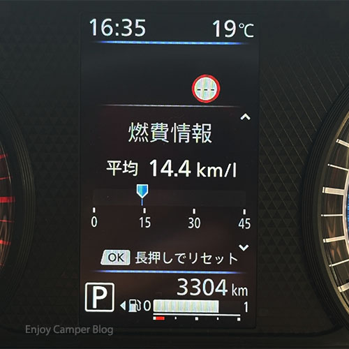 総走行距離3304km、平均燃費14.4km/L。